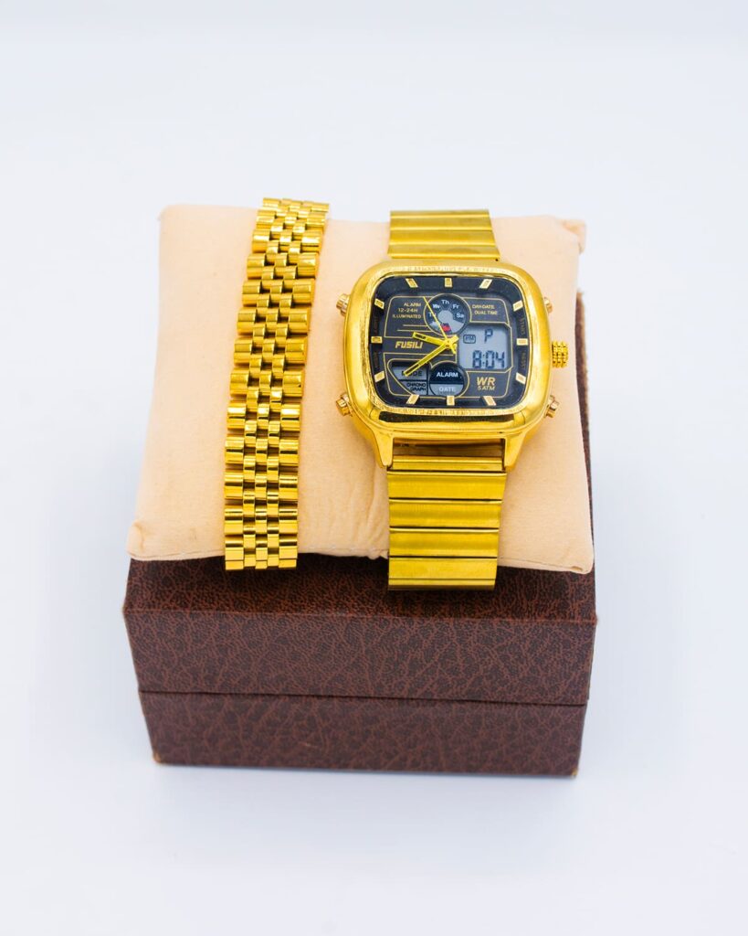 β¨ FUSILU Gold Watch on one wrist β¨ Premium Gold Bracelet on the other β¨ INSTANT millionaire look